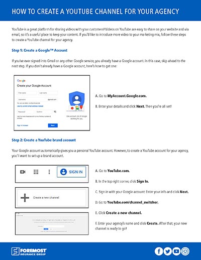 YouTube can help you share creative videos with your customers! Follow these steps to create a YouTube channel for your agency.