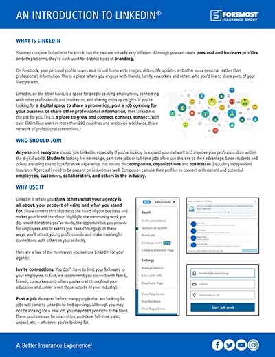 Use this job aid as a guide to build a better brand image online with general tips and specific tips for Facebook, Instagram, LinkedIn®, Twitter and YouTube.