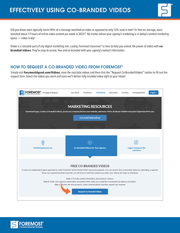Foremost® offers free co-branded videos on ForemostAgent.com! If video isn’t typically included in your marketing mix, here are a few ideas on how to make the most of it.
