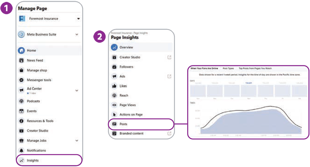 In reality, the best times to post are different for each social media page. Your unique audience will have specific social media usage habits ‐ and these habits will constantly change. That's why it's important to review the Insights and Analytics sections of the social media platforms your agency is on.