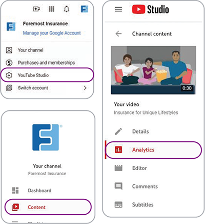 - YouTube allows you to review the analytics on individual videos. First, make sure you're on YouTube StudioTM,
