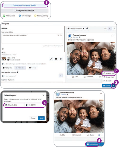 If you don't have time to post every day, don't fret! Many social media platforms have built-in scheduling features. So, when you have time to prepare social content, you can schedule your posts to be published days, weeks or even months in advance.