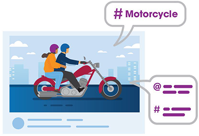Hashtags (written with a # symbol) are used to index keywords or topics on most social media platforms. It allows people to easily follow topics they're interested in. For example, if you're sharing a post about motorcycle insurance, try including the hashtag: #Motorcycle. This will get your post in front of motorcycle enthusiasts who follow the #Motorcycle feed, potentially expanding your reach.
